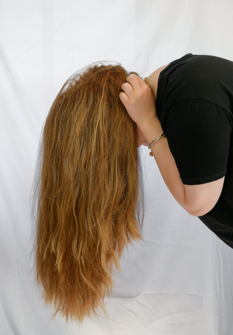 - Repeat rising step (noted above). Gently wring out excess water at the ends, place hair in a towel for up to 30 minutes, then place on a wig head to finish drying.